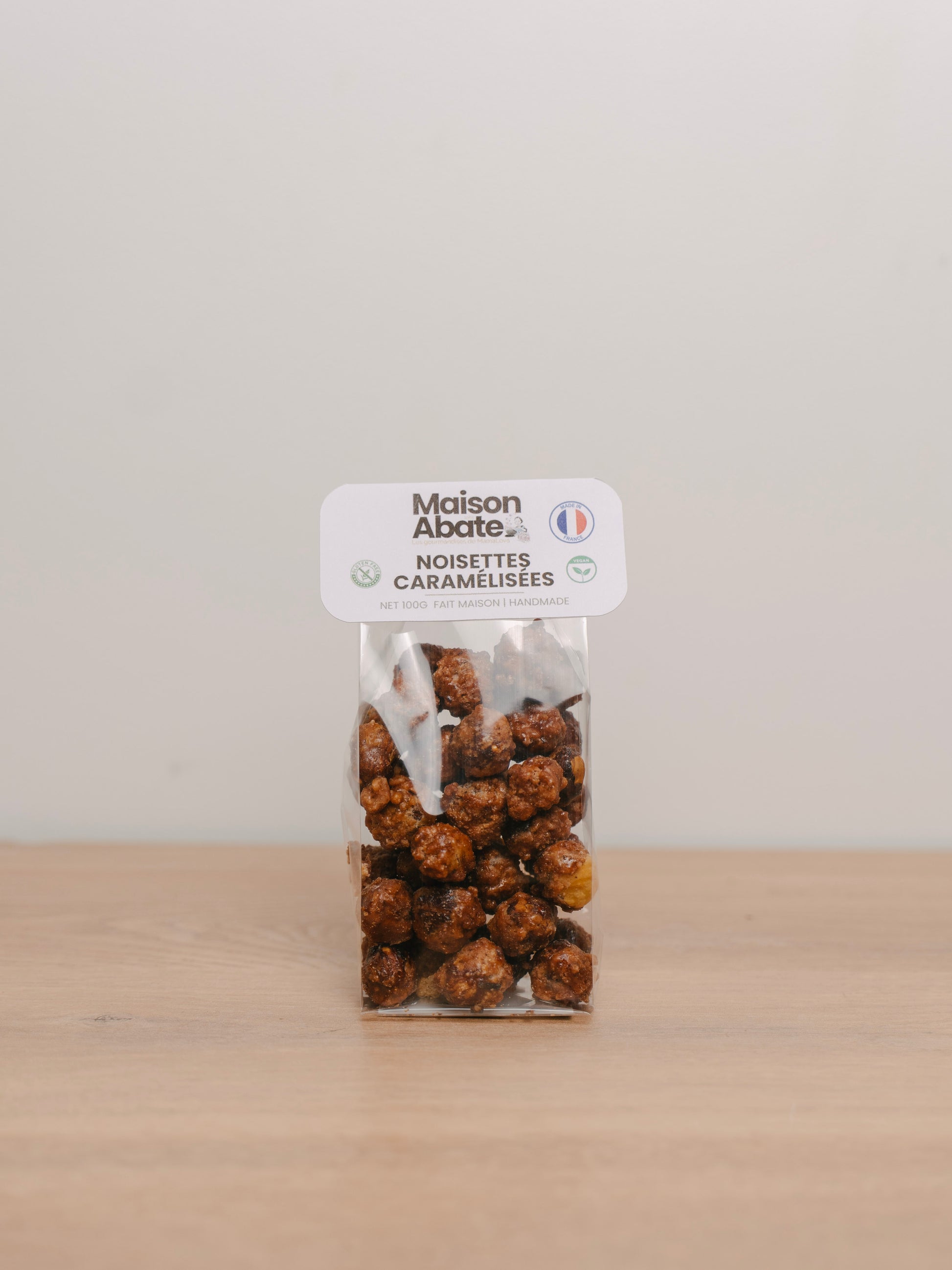 Ces noisettes entières, soigneusement sélectionnées, sont caramélisées lentement à la main dans notre chaudron en cuivre, sans arôme ni conservateur.